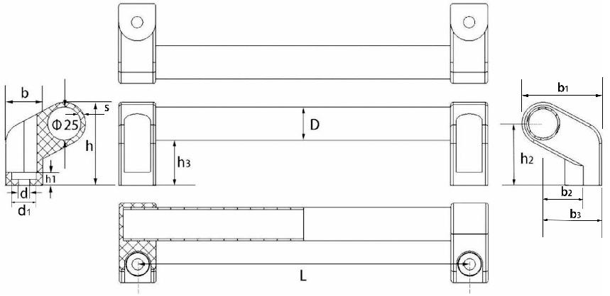 材質(zhì):管身(鋁合金)、拉手支座(增強尼龍含30%玻璃纖維)